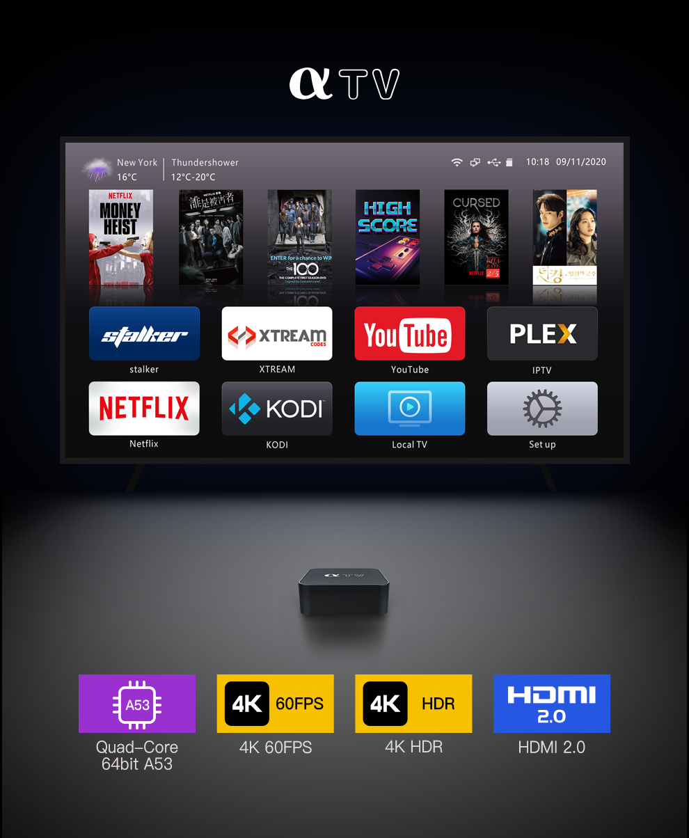 | TV APP | Xtream code, Stalker, Netflix(1080P), YouTube(4K), KODI(XBMC), Plex etc. | |